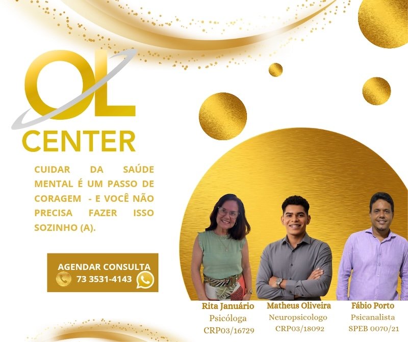 Cuidar da sua saúde mental é um passo de coragem — e você não precisa fazer isso sozinho. Agora estamos atendendo na OL Center, localizada na Praça Virgílio Damásio, n°:250 (em frente ao Banco Santander) no centro de Ipiaú-BA, oferecendo um espaço acolhedor, ético e preparado para cuidar de você.